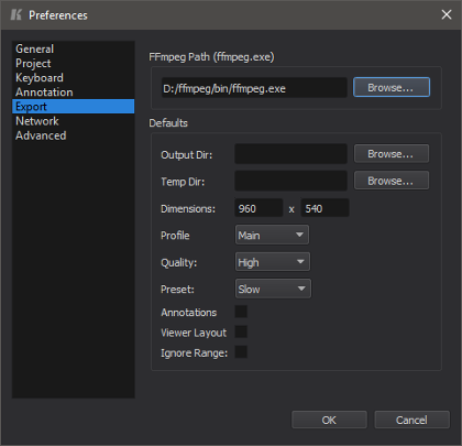 Note: Keyframe Pro requires ffmpeg for export. ffmpeg is an open-source command line tool to convert multimedia between formats.